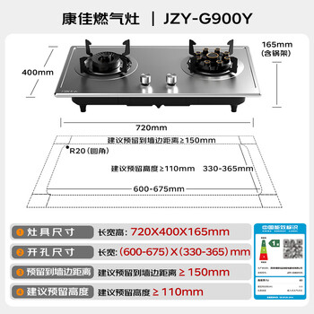 康佳(KONKA)燃气灶煤气灶双灶具 5.0kW九腔爆炒文武火鸳鸯灶台式嵌入式 防爆不锈钢上门安装 JZY-G900Y