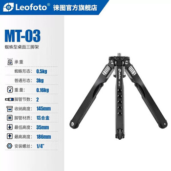 徕图(Leofoto)三脚架 摄影摄像手机相机微单单反手机迷你轻便便携桌面三脚架 MT-03