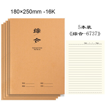 金隆兴 【5本装】牛皮纸科目本 B5初中高中生课堂错题本作业本笔记本记事笔记本子 综合本5本装6737