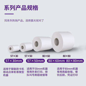 晨光(M&G)紫晨光 56m热敏收银纸 银联刷卡机打印纸 80*80mm移动点单热敏纸 40卷/箱APYUX58J