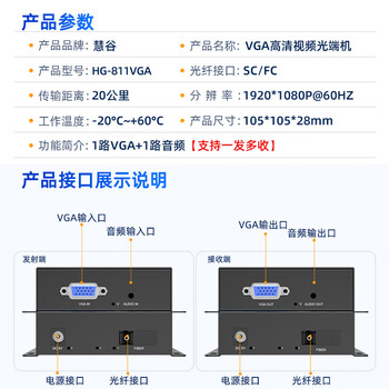 慧谷 VGA光端机 高清视频光端机 VGA光纤延长器 1路VGA+1路音频 SC接口 1对价 HG-811VGA