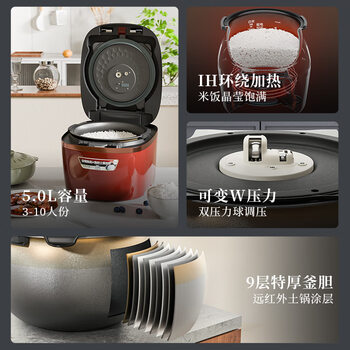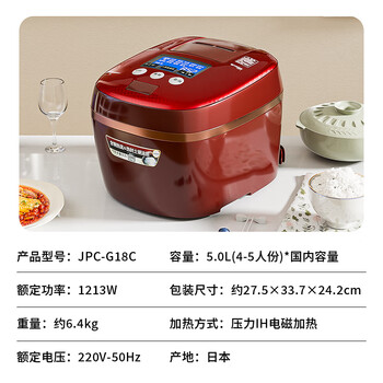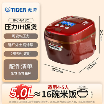 虎牌(TIGER) 压力IH智能多功能压力电饭煲 日本原装进口高端系列4-5人份 5L红色 JPC-G18C-RC
