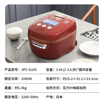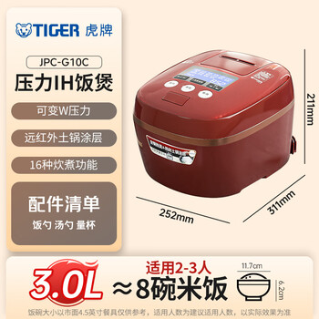虎牌(TIGER) 压力IH智能多功能压力电饭煲 日本原装进口高端系列2-3人 3L 红色 JPC-G10C-RCZ