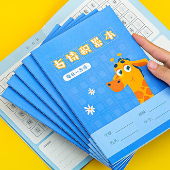 法拉蒙faramon古诗词积累本阅读记录摘抄本一二三年级背诵打卡计划本练习手册笔记本文具蓝色长颈鹿(10本)