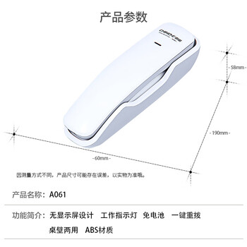 中诺电话机座机 酒店电话 小挂机 桌壁两用 免电池 壁挂式小分机 A061白色 办公伴侣 办公家用桌面机