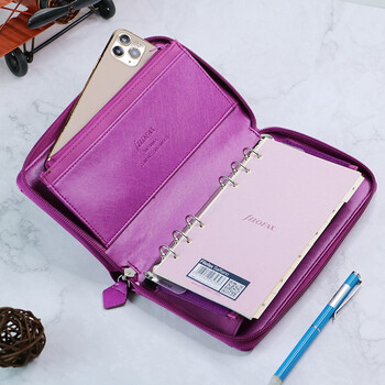 Filofax记事本英国进口高档活页手帐本多功能软皮面拉链手包礼盒装saffiano系列A6树莓色022535