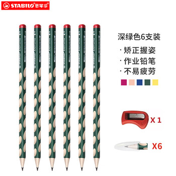 思笔乐(STABILO)洞洞铅笔 小学生文具 HB铅笔 儿童矫姿练字 考试铅笔 324绿色6支装 儿童铅笔
