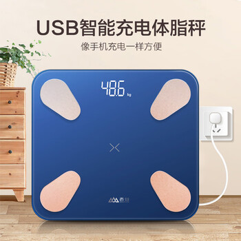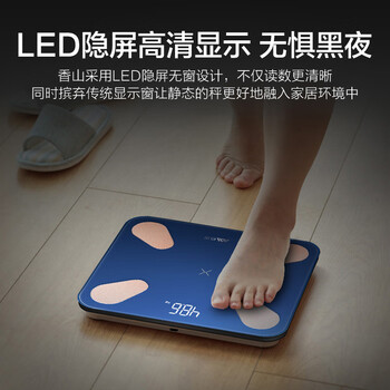 香山 体脂称 智能体重秤 双频测脂更专业 家用防撞防摔电子秤减肥 APP数据监测 F2R 湛蓝【充电款】