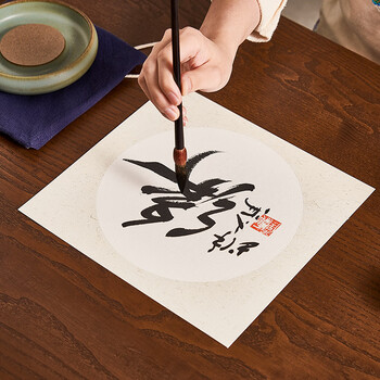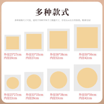 一海堂文化[全网低价]卡纸 国画工笔画书法纸镜片装框用硬卡圆形镜片纸 圆外麻内白生宣 33*33cm*10张