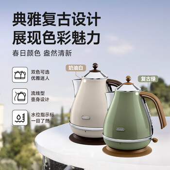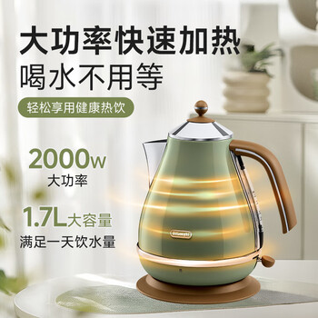 德龙(Delonghi)电热水壶 家用复古304不锈钢烧水电水壶 防干烧大功率1.7L煮水壶 KBO2001.VGR 橄榄绿 礼物