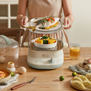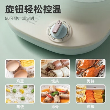 小熊(Bear)电蒸锅二层家用多功能6L大容量电蒸笼自动断电微电脑式蒸包子饭菜加热器v双层方形蒸盘DZG-C60W9