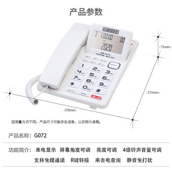 中诺电话机座机固定电话来电显示屏幕角度可调独立音量免打扰有绳板机G072白色办公伴侣