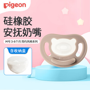 贝亲(Pigeon)安抚奶嘴 硅橡胶奶嘴 M号3-6个月(简约风格 )带收纳盒N1016