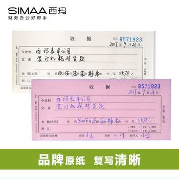 西玛(SIMAA)10本装60k收据 二联单栏财务手写收据单175*75mm 无碳复写自带垫板 单本连号设计 办公用品8013