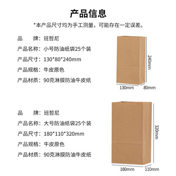 家居日用---收纳用品---收纳袋/包班哲尼防油纸袋25个装