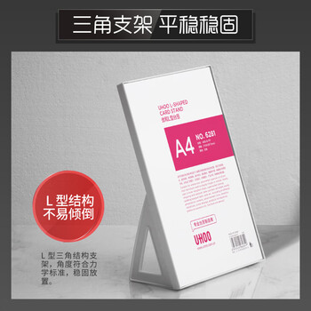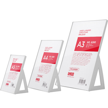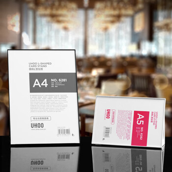 优和(UHOO)桌牌 L型亚克力台卡台签架 白色透明1个装148mm*210mm A5可横可竖 展示牌会议卡 6282