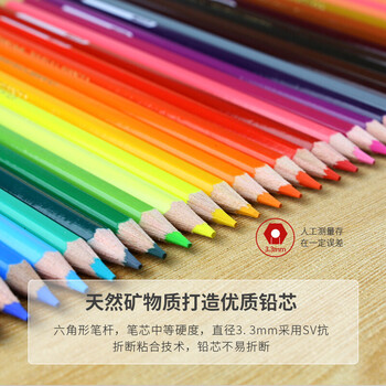 型号:115965 材质:木质 净重(kg):0.95 产品类别:彩色铅笔 支数:60 笔杆材质:木质 笔身尺寸(mm):170mm 产品直径(mm):8mm 包装清单:水溶性彩色铅笔×60 笔刨×1 特点铅笔×1 超净橡皮×1 可伸缩画笔×1包装盒× 1