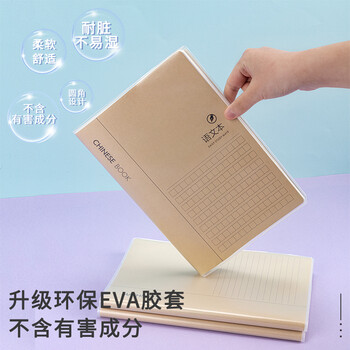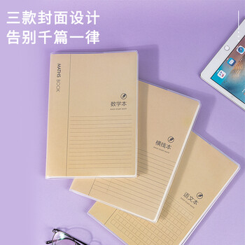 得力(deli)牛皮纸语文本笔记本子胶套本 学生软抄本作业本记事本日记本文具 16K96张 4本装 T1696