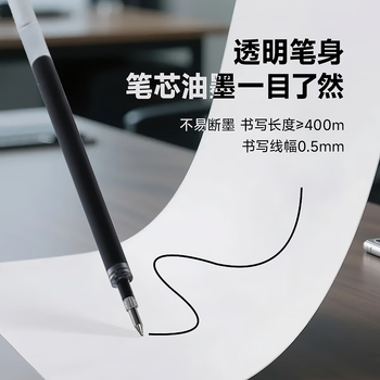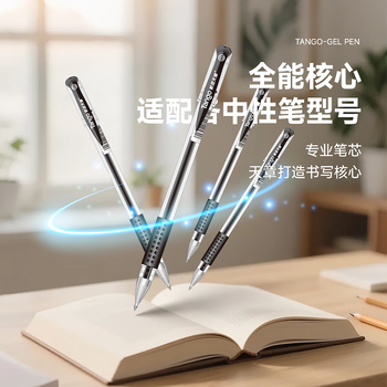 天章(TANGO)中性笔芯0.5mm黑色子弹头 中性签字水性笔替芯 20支装 办公用品文具考试通用