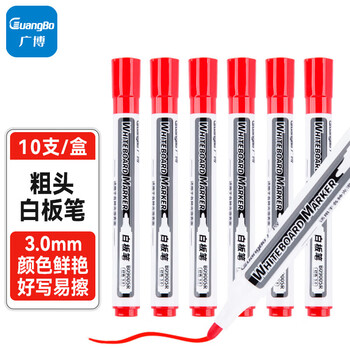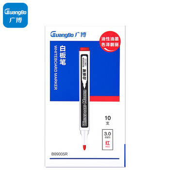 广博(GuangBo)红色白板笔 可擦易擦色泽明亮 单头办公会议笔/物流笔/签名笔 红色10支/盒 办公用品 B09005R