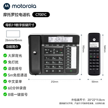 摩托罗拉(Motorola)数字无绳录音电话机 子母机一拖一 办公家用 通话录音可扩展子机C7001C(黑色)