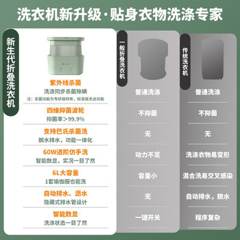 soseki善思折叠洗衣机便携式洗袜子神器迷你内衣裤衣物 浅草绿 SOK02-T-GR