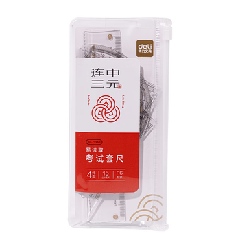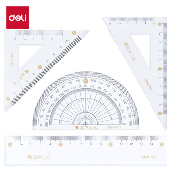 得力(deli)连中三元连中三元套尺4件套 绘图制图考研高考中考金榜题名考试 尺子直尺三角尺量角器