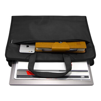 金得利经典直条纹立体手提包 双层隐形拉链男士商务包事务包公事包大容量多层分类收纳袋绅士黑 DC1915
