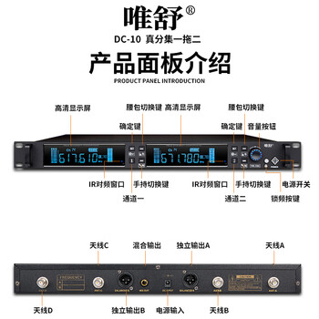 唯舒DC-10SH 真分集专业U段抗干扰无线手持话筒一拖二麦克风500米远距离学校操场户外演出婚庆主持