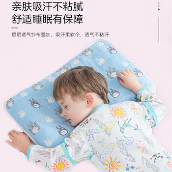 9i9宝宝枕巾婴儿童纯棉纱布2条装透气吸汗巾幼儿园午睡四季通用A52蓝