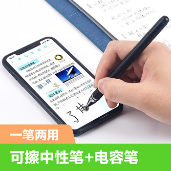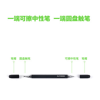 ELFINBOOK 0.5mm金属两用笔 热可擦黑色子弹头中性笔水笔签字笔+屏幕手写圆盘触笔 单支装JH100