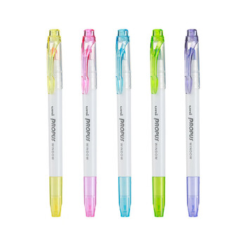 uni三菱 双头荧光记号笔 学生作业手账绘画标记笔彩色笔 细0.4mm粗4mm PUS-103T 1支/袋 浅粉色
