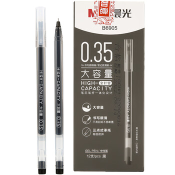 晨光(M&G)文具0.35mm黑色中性笔 大容量全针管签字笔 笔芯笔杆一体化水笔 12支/盒AGPB6905