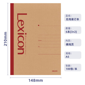 得力(deli)6本A5/100张办公笔记本子 记事本草稿本无线装订本子学生用品 混色23212