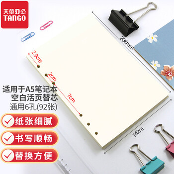 天章(TANGO)A5活页替芯纸空白款加厚100g 通用替换芯适用6孔活页记事本 考研错题复习草稿手账涂鸦 92张