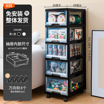 禧天龙 抽屉式收纳柜 宝宝玩具收纳箱 免安装儿童衣柜 卧室床头柜 办公室文件柜 5层