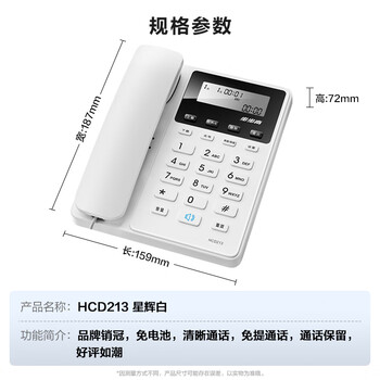 步步高(BBK)电话机座机 固定电话 办公家用 免电池 清晰通话 HCD213星辉白