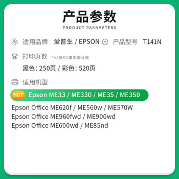 才进适用爱普生T1411墨盒套装ME33 330 35 350 535 560 620 570 82wd 85nd 960fwd 900 600打印机WF7018 T141