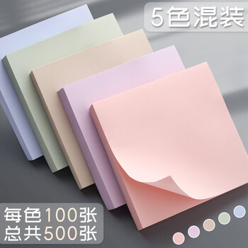 金值 500张(5本装)5色简约莫兰迪便签纸 便利贴76*76mm便签本N次贴记事便条可爱自粘留言本学生用文具用品