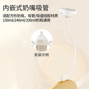 葆氏婴儿奶瓶吸管配件内嵌式吸管+吸管刷(适配赫根多种方形奶瓶)