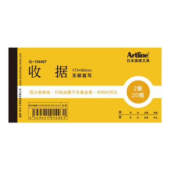 旗牌(Shachihata)财会用品 两联收据单 无碳复写 54K易撕线 173*85mm 5本装 赠垫板 Q-154407