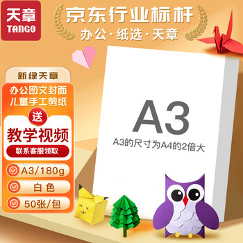 天章 (TANGO)【老师推荐】A3硬卡纸白色加厚打印纸 考试考研复习草稿纸 学生手工折剪绘画纸 白色180g 50张/包