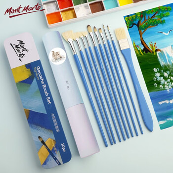 【全网低价】蒙玛特(Mont Marte)想象铁盒10支装水粉笔 猪鬃水彩画笔丙烯颜料画画笔美术勾线笔儿童油画笔套装BMHS1013美术写生