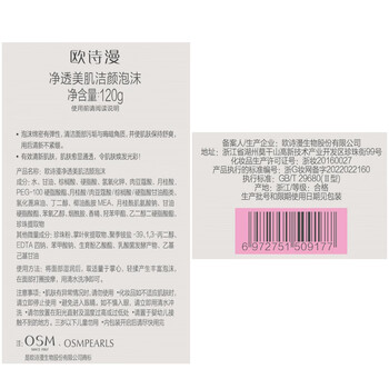 欧诗漫(OSM)净透美肌洁颜泡沫洗面奶120g洁面乳清洁保湿生日礼物