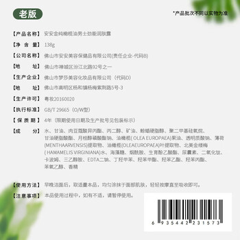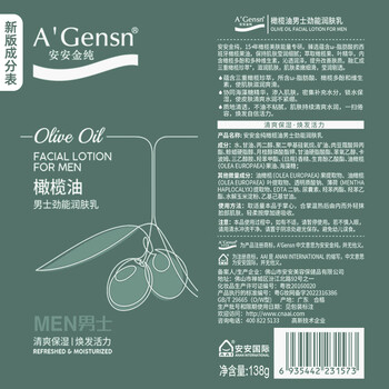产品(注册/备案)名称 安安金纯橄榄油男士劲能润肤乳
