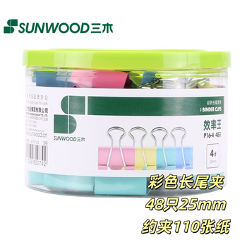 三木(SUNWOOD)效率王系列 48只25mm 4#彩色长尾夹/金属票据夹/燕尾夹 P16-4