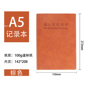 XYBP出入库记录本A4仓库货物明细账本店铺商用库房皮质登记本材料账进出货盘点记账本库存登记(A4棕色)