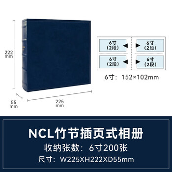 Nakabayashi仲林插袋式相册本200张6寸/PU皮复古影集/插页家庭相薄/diy纪念册照片书 NBZJ-2UP6-BU