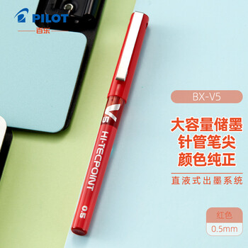 百乐(PILOT)BX-V5 直液式走珠笔中性笔 0.5mm针管水笔签字笔 彩色学生考试笔 红色