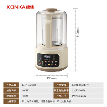康佳(KONKA)破壁机豆浆机家用1.65L降噪低音多功能加热预约搅拌料理机婴儿辅食机榨汁机果汁机 KPBJ-1652E-W